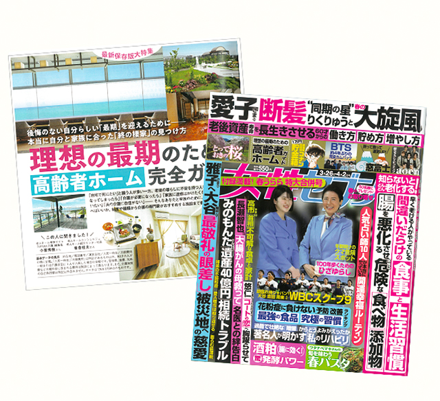 3月12日発売の小学館発行「女性セブン」の特集ページ「理想の最後のために 高齢者ホーム完全ガイド」に有料老人ホーム インテフィールが掲載されました。